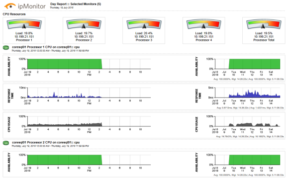 利用 ipMonitor 的自动化修复操作来减少停机时间。 重新启动失败的应用程序和 Windows 服务、重新启动服务器、备份文件和运行脚本。 通过在发生故障时自动采取纠正措施来恢复服务,避免深夜呼叫并在无需您干预的情况下解决问题。