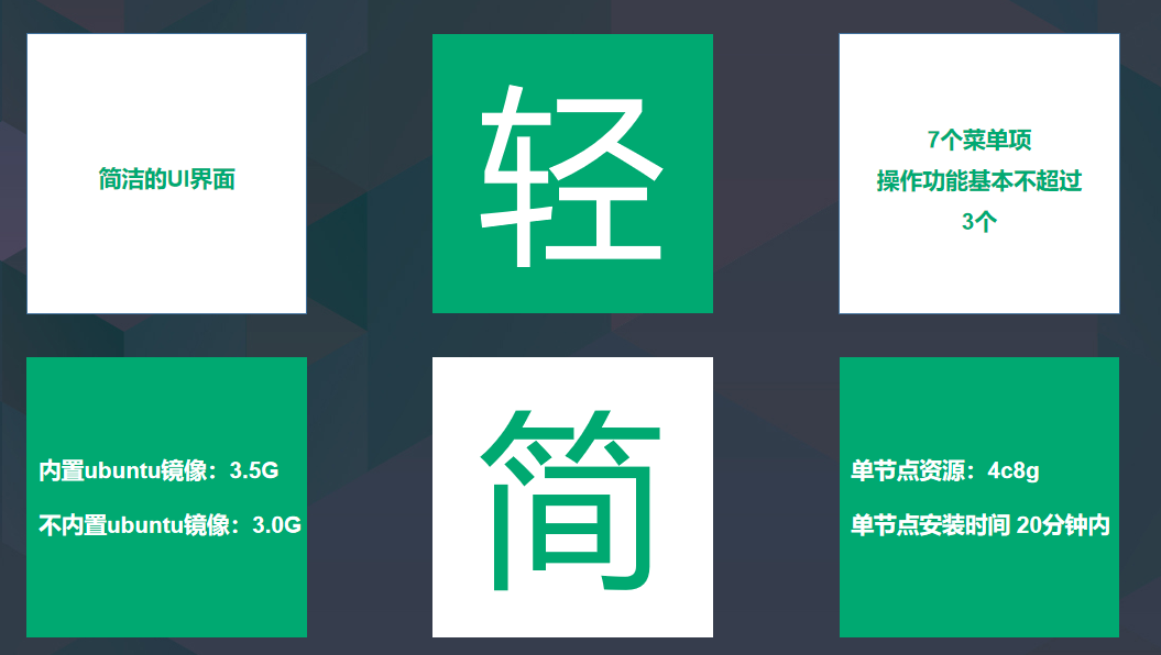 支持 x86 的单节点部署;集成物联网设备,结合 AI 算法及应用,实现数据就近处理和超低时延;利用 GPU 直通及虚拟化技术,达到 AI 和 ML 应用的快速部署和管理。