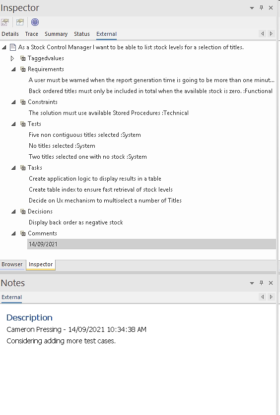 新的检查器窗口选项卡“外部数据”提供了一种新工具,用于更深入地挖掘外部存储的信息以及与模型“代理”元素相关的信息。这是用于协调模型与外部系统的宝贵且必不可少的工具。