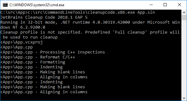 ReSharper命令行工具, 一个可从命令行使用的独立工具集或作为持续集成过程的一部分,现在允许您在C ++项目中执行代码清理。 在你的解决方案上运行 cleanupcode.x86.exe,它会自动重新格式化您的代码,删除常见的冗余内容,应用Clang-Tidy修补程序 - 其通用代码样式修复程序。这可以立即消除项目或解决方案中的代码风格违规,并确保统一的代码库。