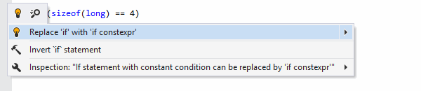 • 新的检查(带有相应的修补程序和代码清理项目),建议在条件是编译时常量表达式时使用if constexpr语句替换if语句。