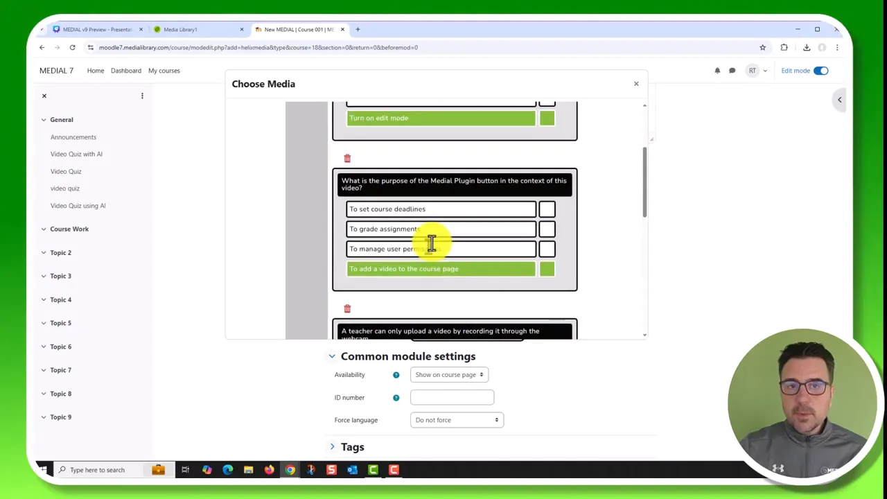 形成性评估的创建曾是独立任务。MEDIAL v9实现了该步骤自动化。上传或选择视频后,配置题目数量、难度等选项,AI即可生成多选题、是非题及自由回答题。题目将沿视频时间轴精准定位,在相关时刻呈现,发布前可随时编辑、删除或重新生成任意题目。