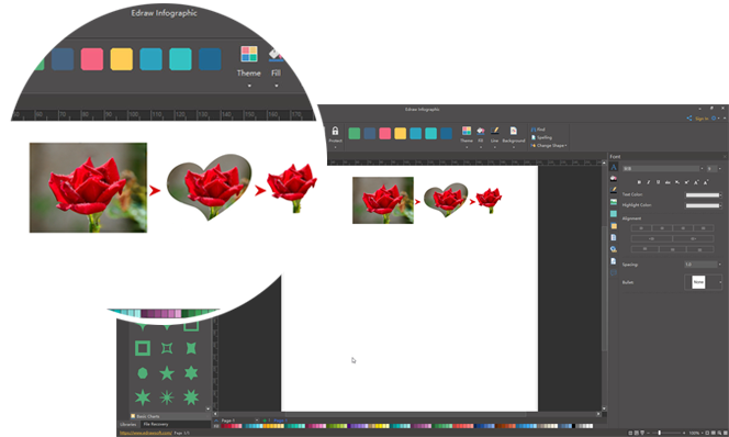 无论是信息图还是彩页设计,图片都必不可少。亿图信息图不仅可以让您插入图片,还支持图片剪裁。您可以把图片剪裁成任意形状,也可以把一个图片需要的部位扣出来。