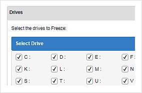 选择将处于 Frozen 冻结或 Thawed 解冻(即允许用户保存信息或保留重要数据)的驱动器。