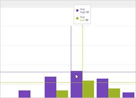 当您使用鼠标或触摸手势将鼠标悬停在图表数据系列上时,会激活许多交互。这些悬停交互可以显示十字光标或条/列的高亮处,以捕捉到实际数据点。将工具提示附加到悬停交互并将其锁定在十字准线或轴上。