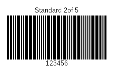 Standard 2 of 5是一个自检的纯数字条码。与Interleaved 2 of 5,所有信息都编码在条中;空格是固定宽度的,仅用于分隔条。Standard 2 of 5主要用于仓库分拣、照片整理和机票标记。