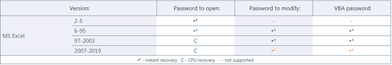 使用图形卡可以进一步加速Microsoft Excel 2007-2016密码的恢复。另一款Passcovery产品“Accent OFFICE Password Recovery”支持图形卡操作。