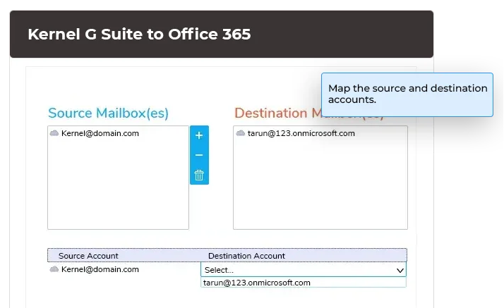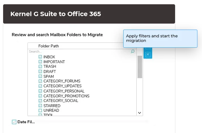 该工具允许用户将 Google 邮箱与相应的 Office 365 邮箱进行映射。这有助于根据需要将收件箱、日历、联系人、任务等数据项迁移到目标位置。G Suite 到 Microsoft 365 的迁移工具还会保留电子邮件的已读/未读状态。