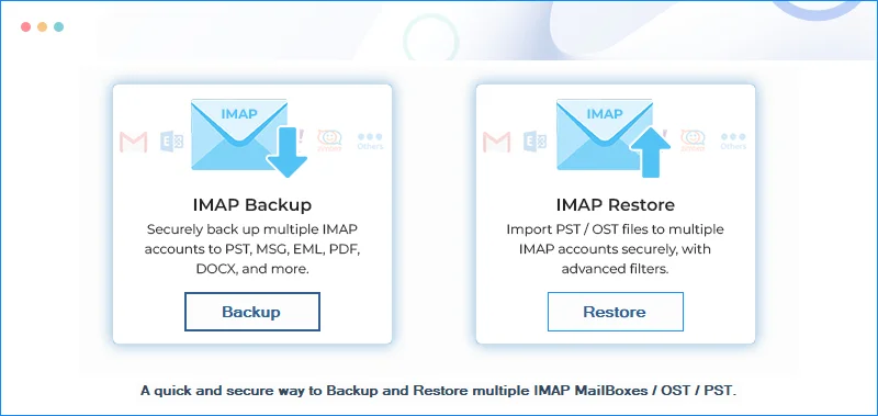 探索该软件的各项功能,将 IMAP 数据备份为多种文件格式。它还支持将 PST 文件恢复到 IMAP 帐户,并提供以下实用功能。