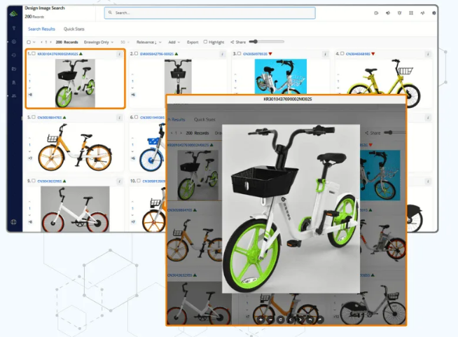 1. AI 驱动的图像相似性搜索:PatSeer 允许您上传任何设计图像作为查询,并返回快速准确的视觉匹配结果。