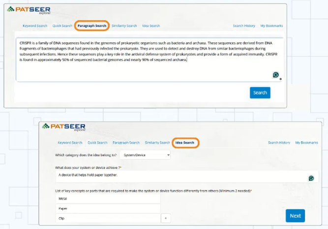 是的,PatSeer Explorer 支持语义搜索。前往段落搜索表单,粘贴您感兴趣的段落即可。这款基于人工智能的语义引擎设计简洁易用,同时功能强大,能够为用户提供最相关的搜索结果。即使您没有任何搜索经验,也可以在 PatSeer Explorer 中进行搜索。