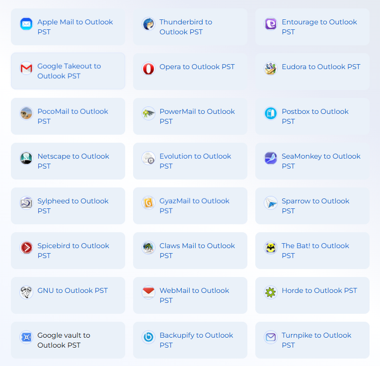 支持所有主流 MBOX 数据源以便迁移至 Outlook