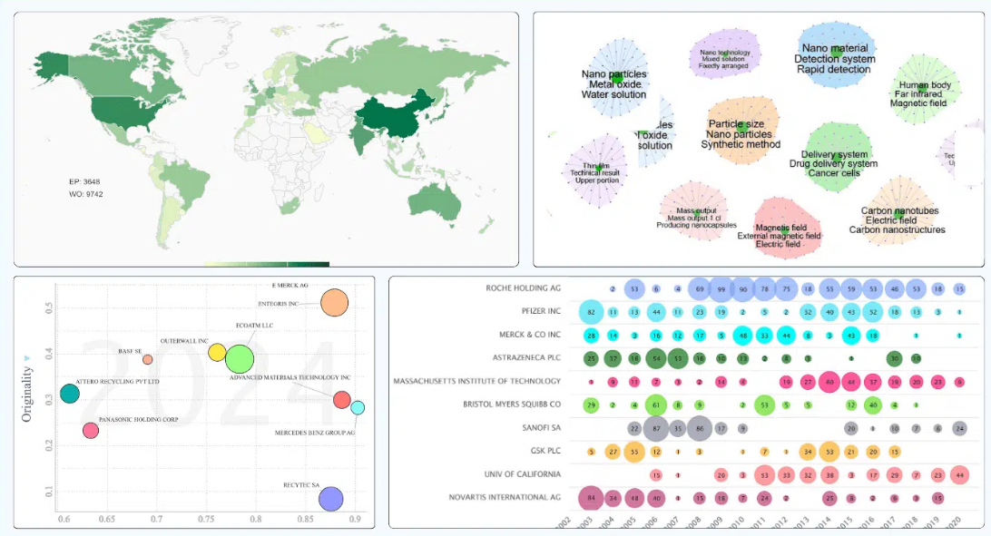 利用一系列引人注目的多维定量和定性图表对专利数据集进行排名和比较,从而全面了解某一技术领域。